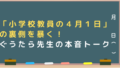 現役小学校教員の私が、日々働く中で「しんど!(たまにおもろ!)」と思うことを書いていくブログです。記事を読んで「わかるわぁ~」と先生方に共感してもらったり、「え?!そんなこともやってるの?」と保護者の方々に驚いてもらったり、「いろいろあるけど、先生って楽しそう!」と教員を目指している人に思ってもらえたりしたら、とても嬉しいです。楽しんでいってくださいね!